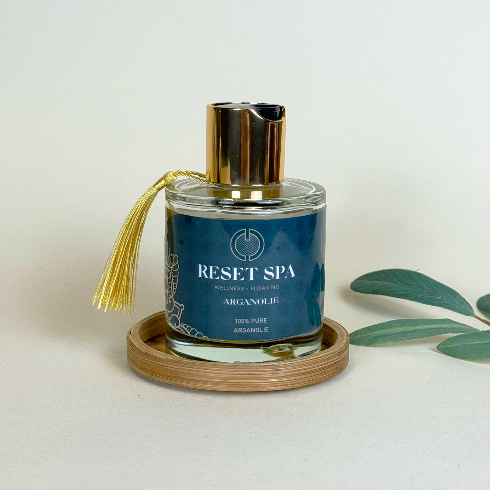 Reset Spa Arganolie is een 100% pure, koudgeperste olie, afkomstig uit de pitten van de Marokkaanse arganboom. Deze voedende olie zit boordevol vitamine E, antioxidanten en essentiële vetzuren, en wordt snel opgenomen door huid en haar zonder een vettig laagje achter te laten.
